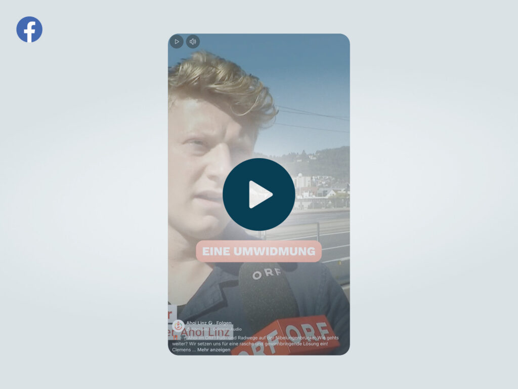 Link zum Video-Ausschnitt des ORF-Beitrags zur Nibelungenbrücke im September 2025 – Reel auf Facebook. (Foto: Ahoi Linz mit Screenshot via on.ORF.at)